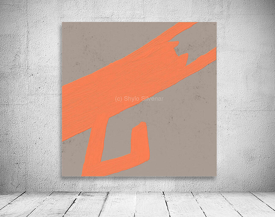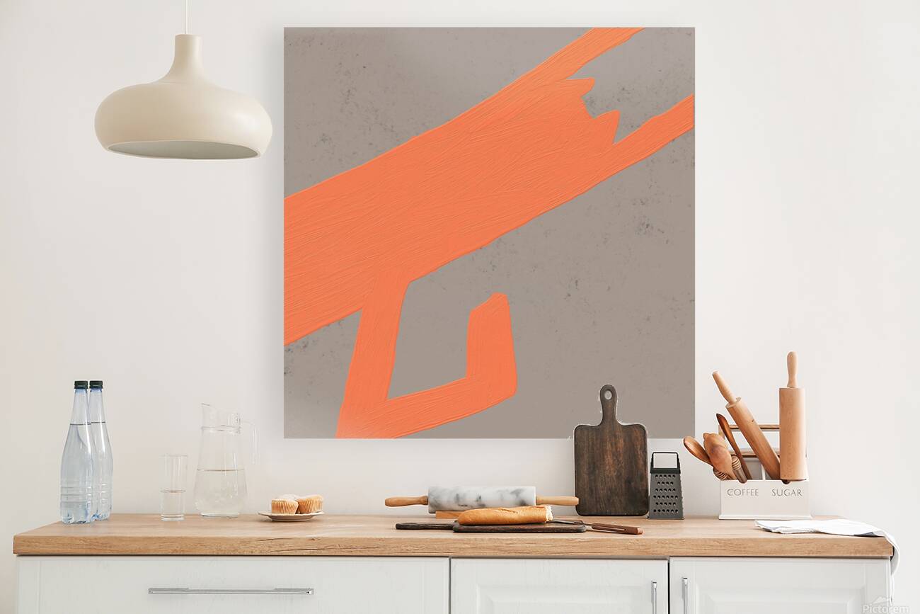 Get this artwork "Cat Stretching in Orange on Gray" in a framed print.