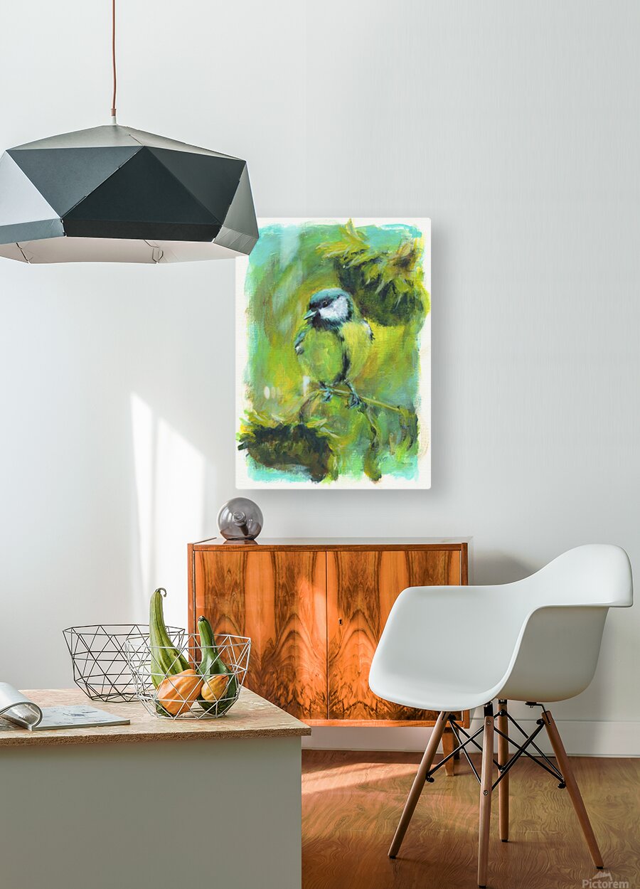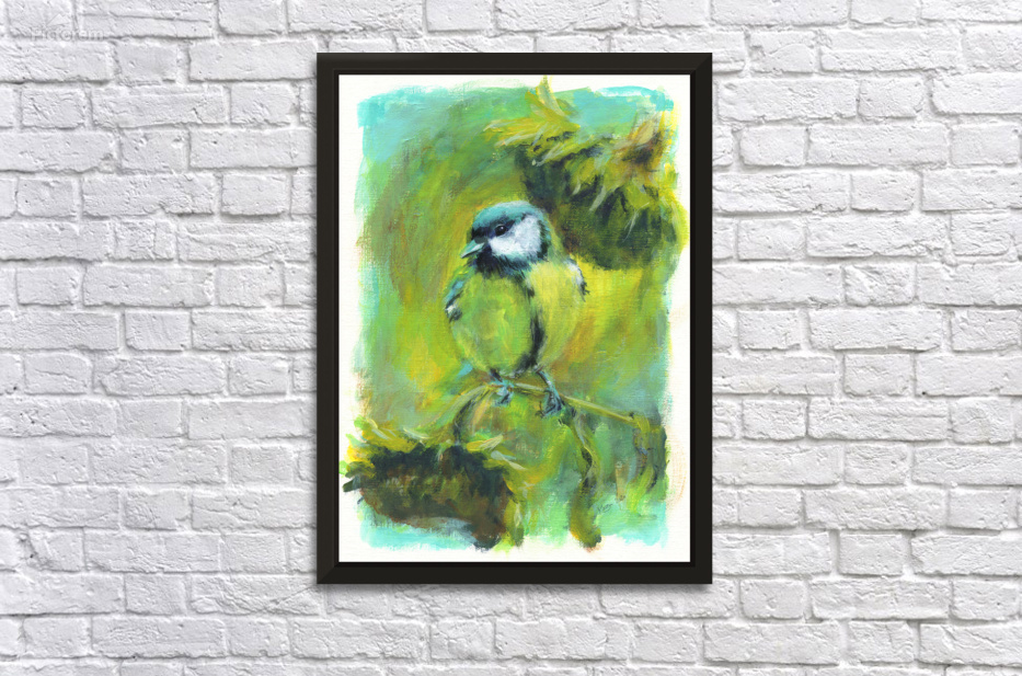 Get this artwork "Great tit with sunflowers acrylic painting " in a framed print.