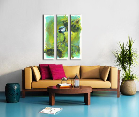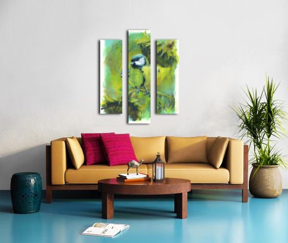 GREAT TIT WITH SUNFLOWERS ACRYLIC PAINTING  KAREN KASPAR  Canvas Print