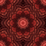 This fractal design features a floral mandala with layers of petals in earthy wooden tones of glowing brown and russet red.