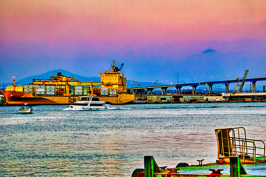 The ships roll in from far and near, their cargo holds with treasures clear. The flags fly high, the anchors fall, a seaport binds the world to all. San Diego, California: 08/2021