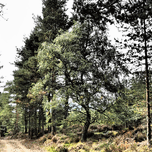 I took this photo during a lovely summer nature walk through the Scottish Highlands. Features a tranquil forest with a narrow dirt path winding through dense Pine and Birch trees. The lush greenery of the trees contrasts with the earthy tones of the path, inviting a sense of peaceful exploration. Dappled sunlight filters through the leaves, creating a harmonious and calming atmosphere