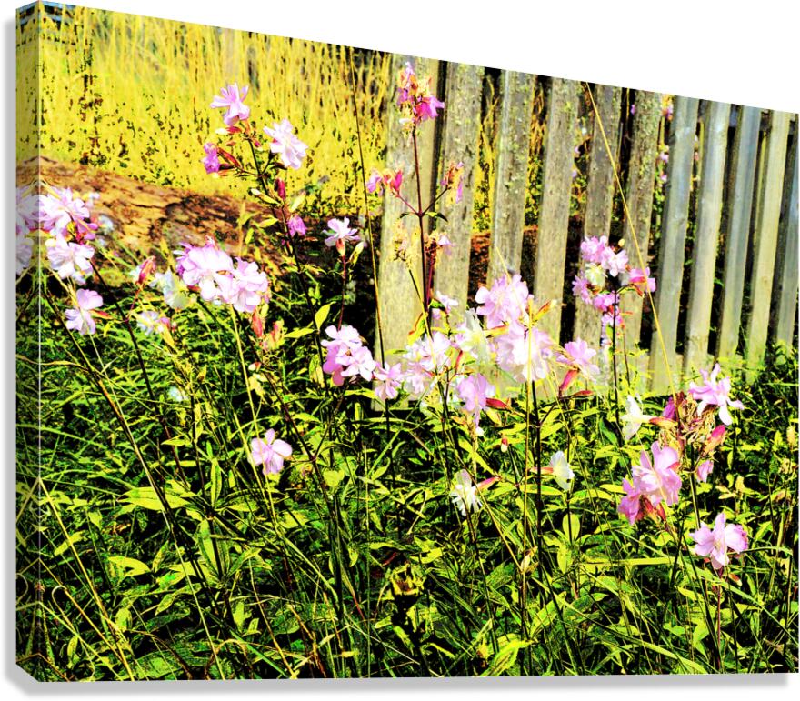 VIBRANT  WILDFLOWERS  BY A RUSTIC FENCE                                                                                             CATRIONA ROBERTS NATURE PHOTOGRAPHY AND DESIGNS  Canvas Print