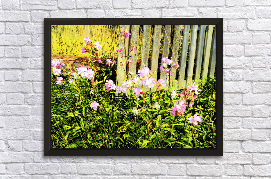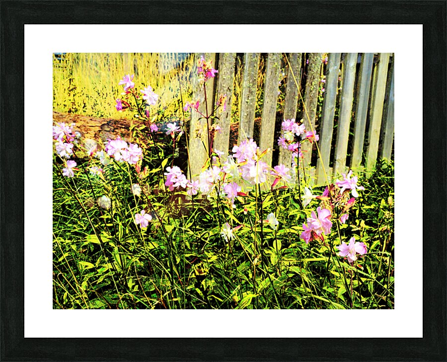 Vibrant  Wildflowers  by a Rustic Fence                                                                                             Picture Frame Printing