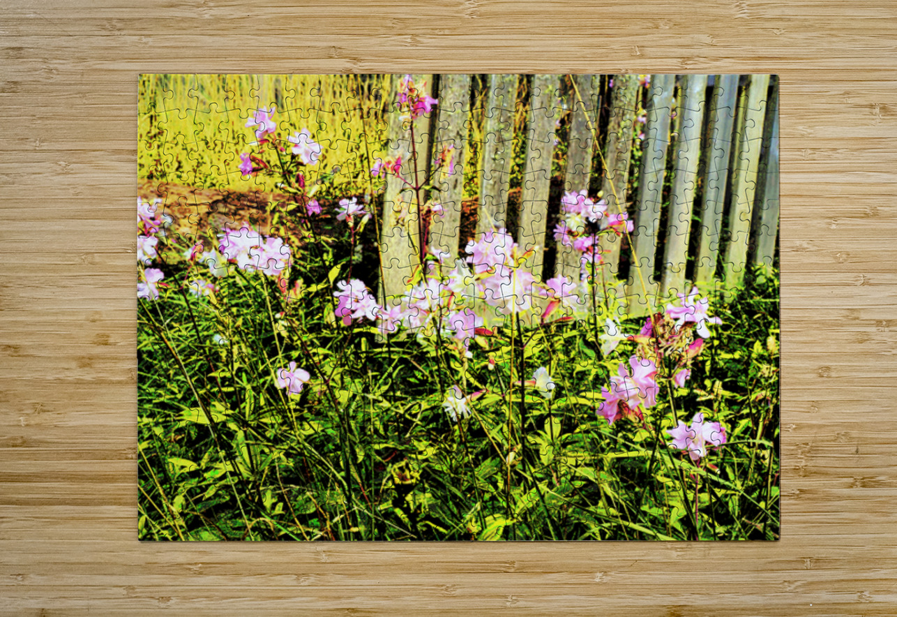 Vibrant  Wildflowers  by a Rustic Fence                                                                                             Catriona Roberts Nature Photography and Designs Puzzle printing