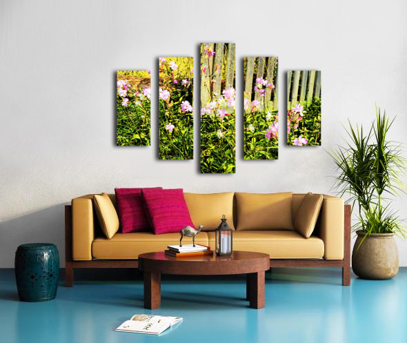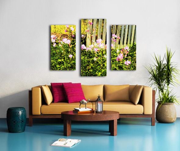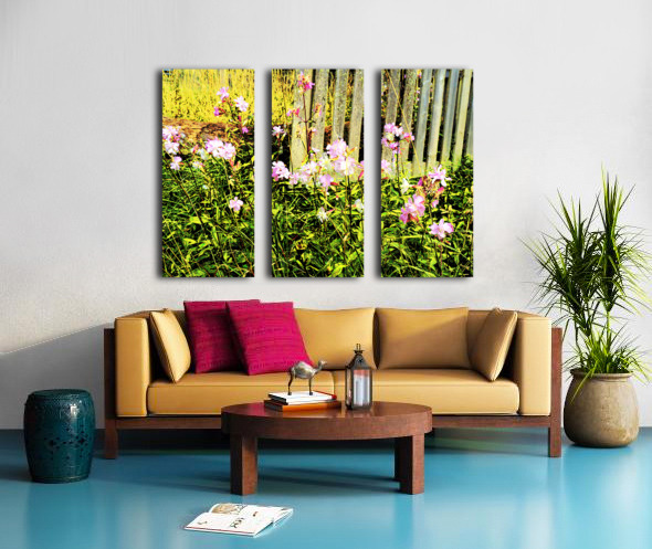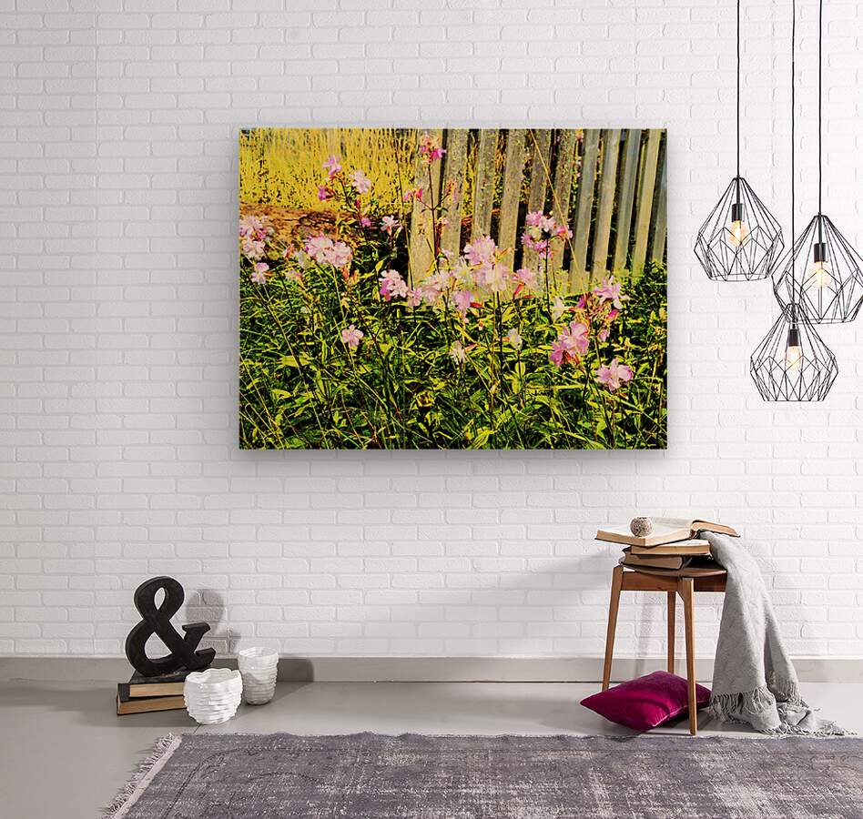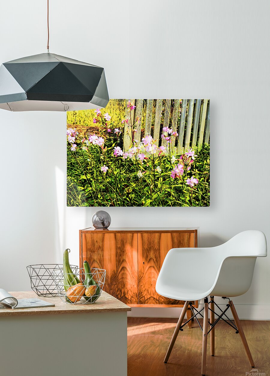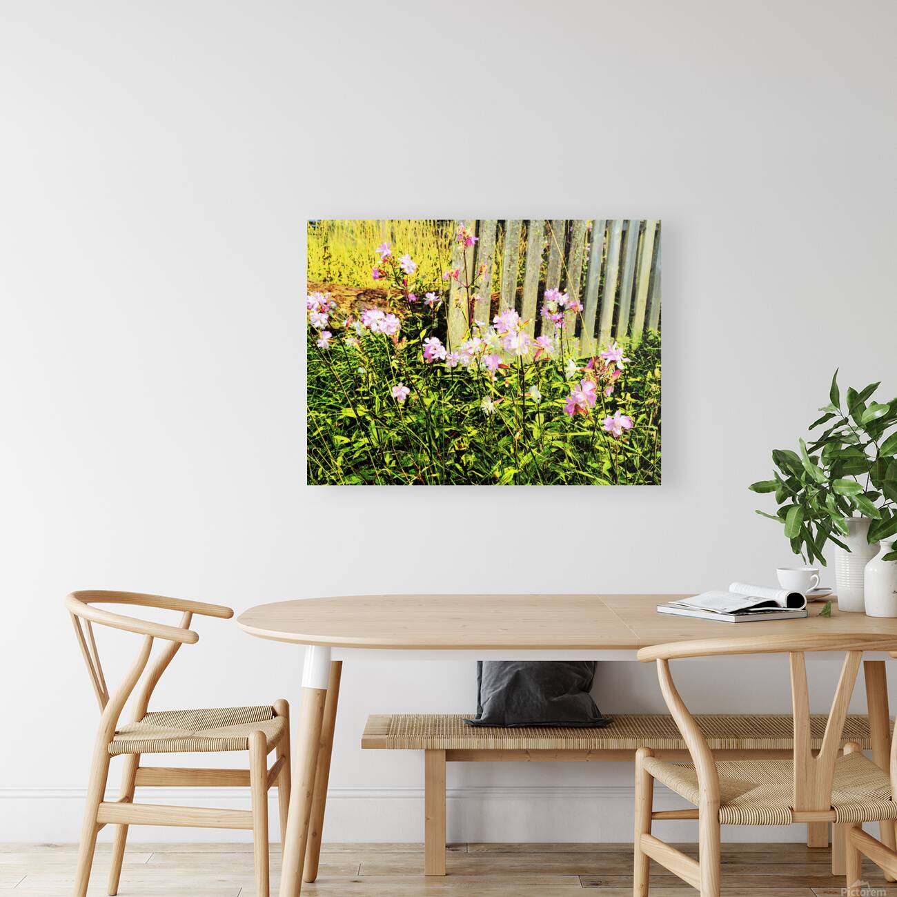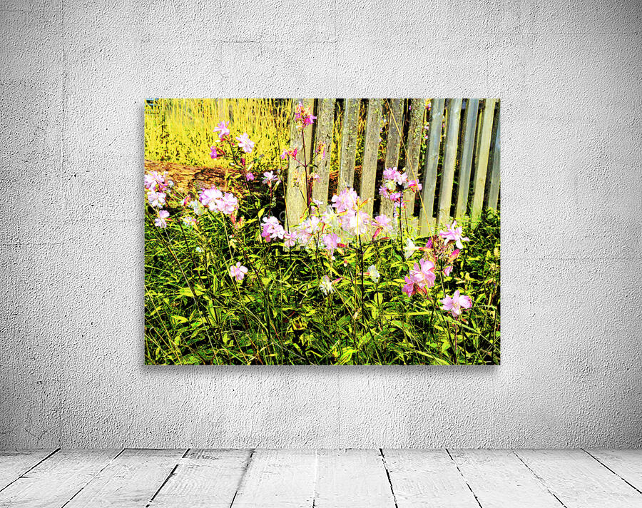 Vibrant  Wildflowers  by a Rustic Fence                                                                                             Canvas print