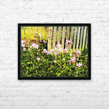 Vibrant  Wildflowers  by a Rustic Fence                                                                                             Frame print