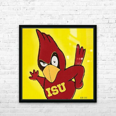Created from historic memorabilia in Row One's physical collection, this authentic vintage ISU (Iowa State) cartoon mascot art will look great in your home or office. Derivative art © 2025 Row One Brand