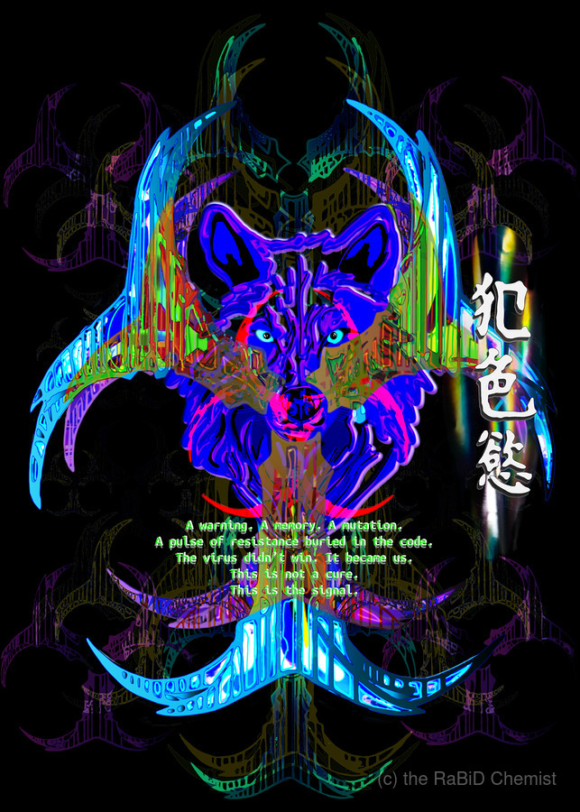 I am the RABID Chemist. A survivor marked by infection, rupture, and rebirth — HIV since 1986, stroke since 1997 — I became a contagion instead of a casualty. My work is mutation in motion: glitch, lust, memory, and ritual coded into digital artifacts. The RABID Project is not a brand. It is a transmission. It reclaims sickness, queerness, and rage as sacred mutation — transforming scars into symbols, and desire into digital myth. Every piece is both archive and outbreak: proof that the virus failed, and I kept transmitting.