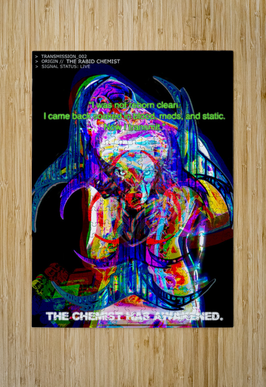 I am the RABID Chemist. A survivor marked by infection, rupture, and rebirth — HIV since 1986, stroke since 1997 — I became a contagion instead of a casualty. My work is mutation in motion: glitch, lust, memory, and ritual coded into digital artifacts. The RABID Project is not a brand. It is a transmission. It reclaims sickness, queerness, and rage as sacred mutation — transforming scars into symbols, and desire into digital myth. Every piece is both archive and outbreak: proof that the virus failed, and I kept transmitting.