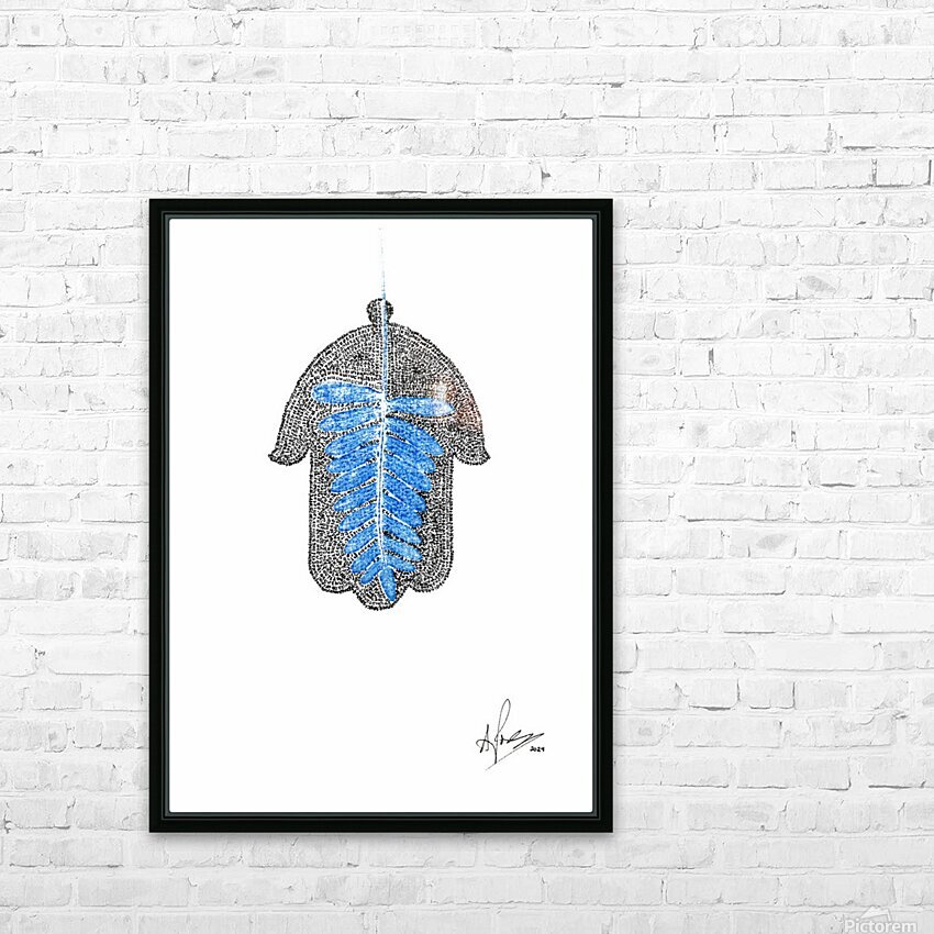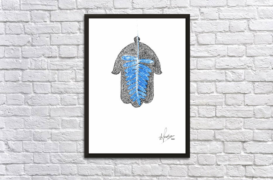 Hamsa Mircro-Blessing with a Blue Fern Monoprint Wall Decor Frame