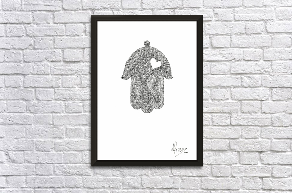 ABOUT THIS ARTWORK: HAMSA MIRCRO-BLESSING WITH A HEART V1