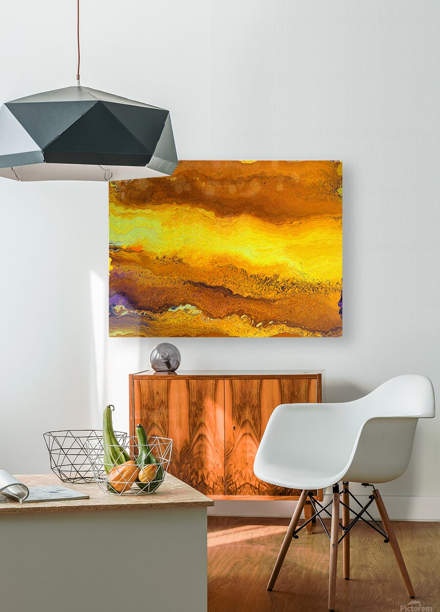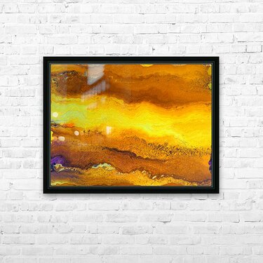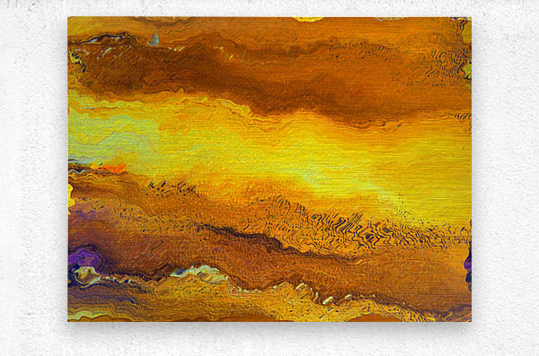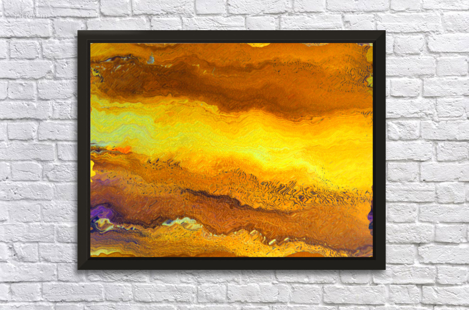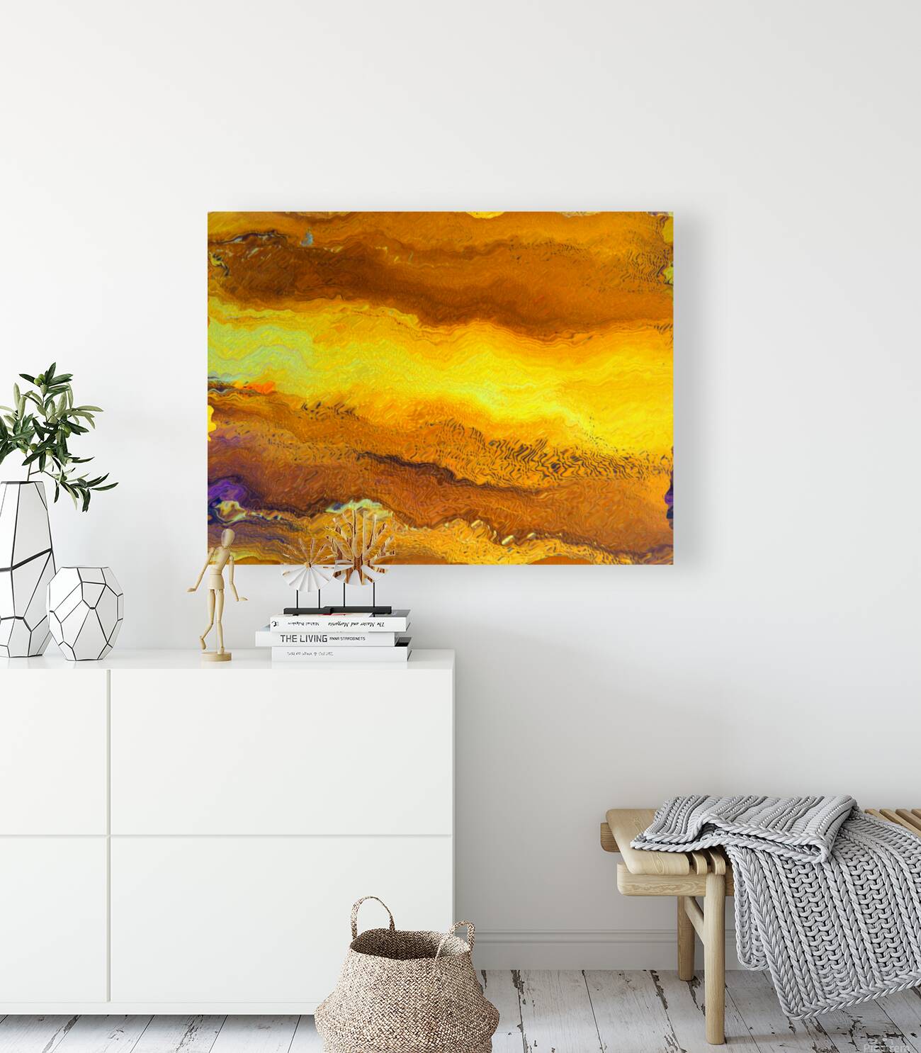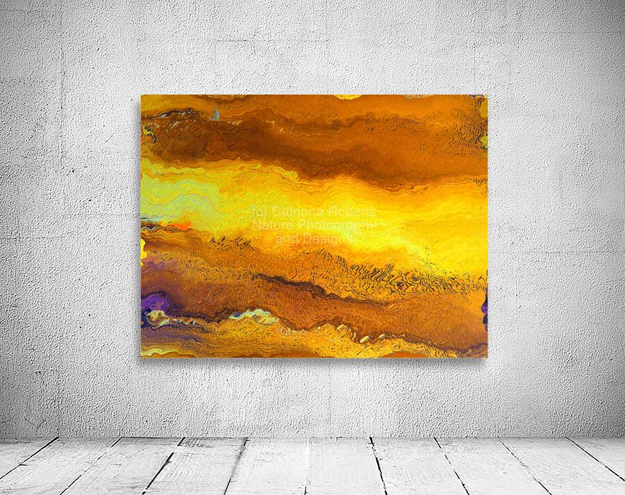 Originally a hand painted abstract acrylic, laterally digitally manipulated using a creative filter in canva.com and digitally colour edited, created this stunning piece of contemporary art to emerge. Features an array of swirling patterns in warm orange and yellow tones. A subtle blending of purple adds contrast and depth.