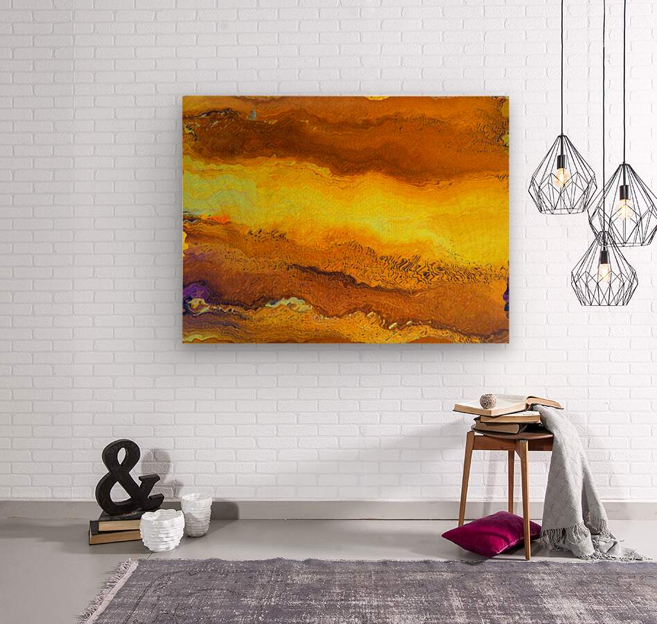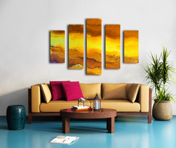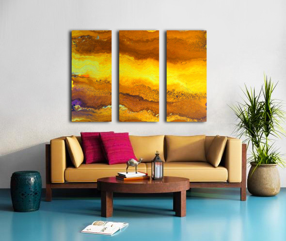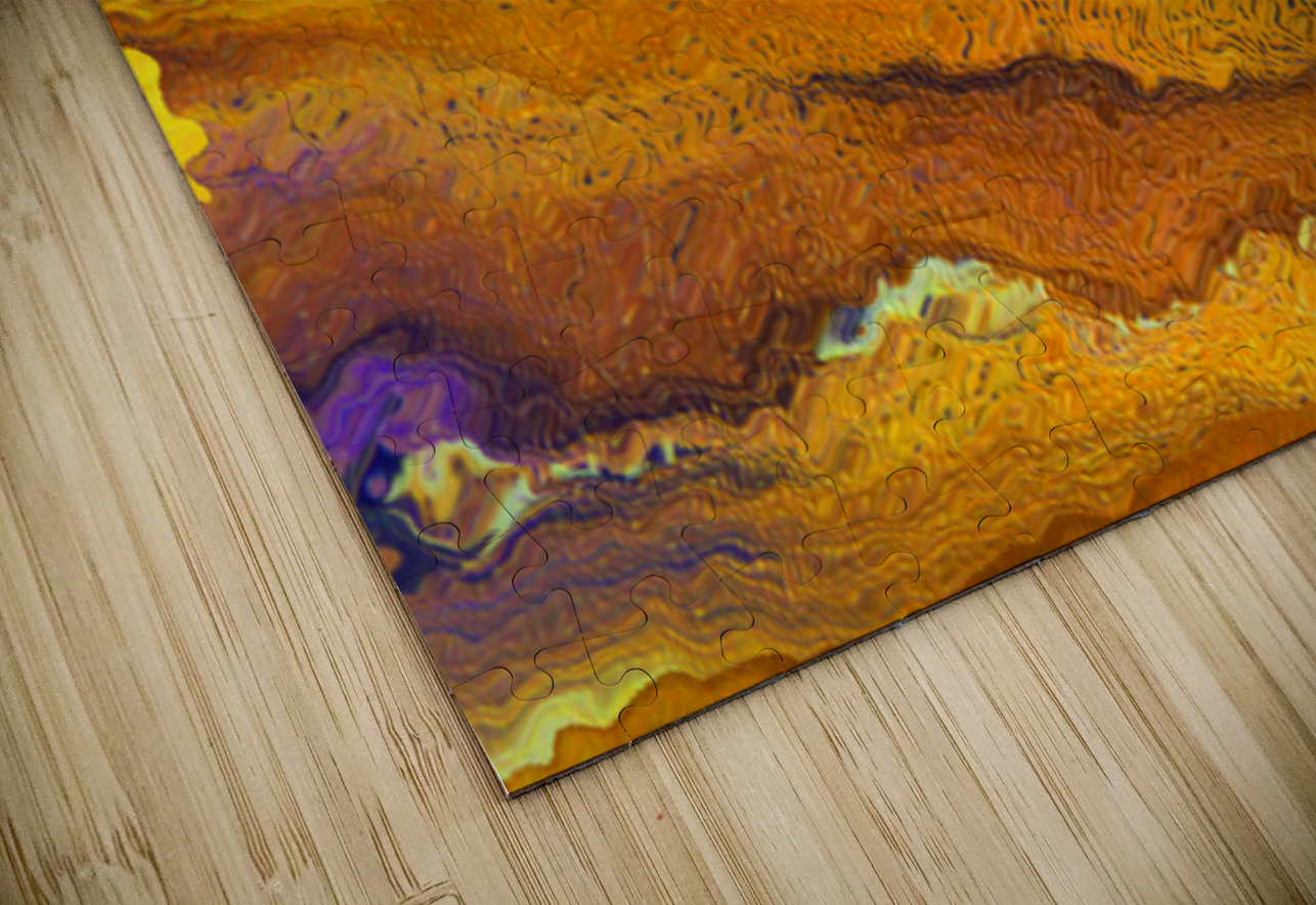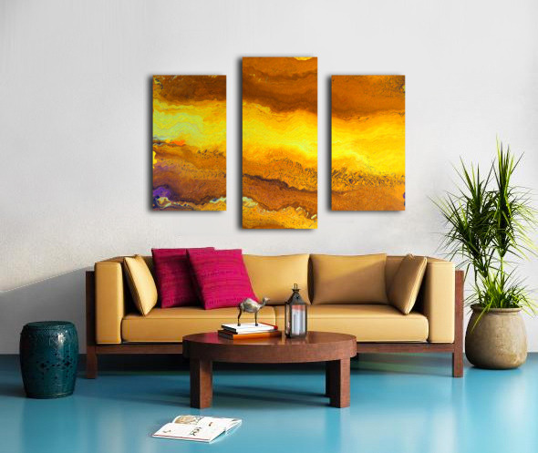 Originally a hand painted abstract acrylic, laterally digitally manipulated using a creative filter in canva.com and digitally colour edited, created this stunning piece of contemporary art to emerge. Features an array of swirling patterns in warm orange and yellow tones. A subtle blending of purple adds contrast and depth.