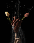 This photo is dear to my heart. Literally. This work was inspired by my walk with God, and how Jesus flipped my life upside down. The whole idea is that it only takes one touch from God to be healed, but also understanding that this is a journey and sometimes these things take time too (hence the stone is still being crumbled away). The water resembles living water and the flowers also resemble life.