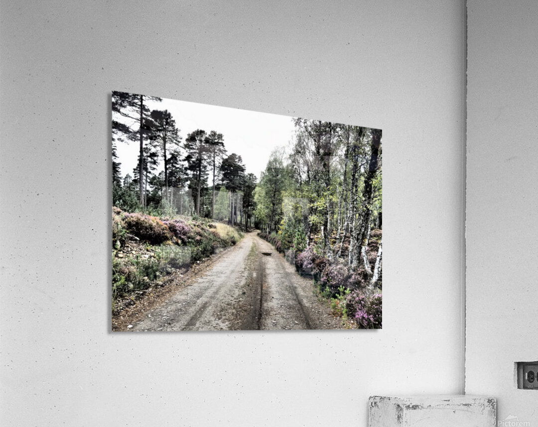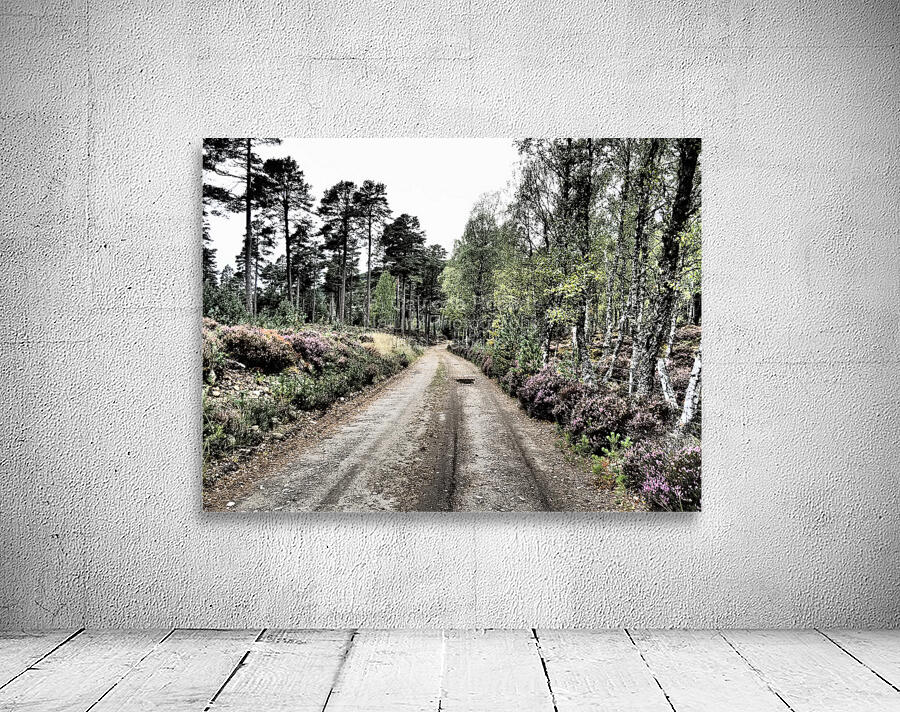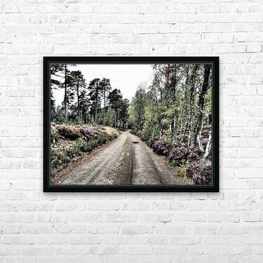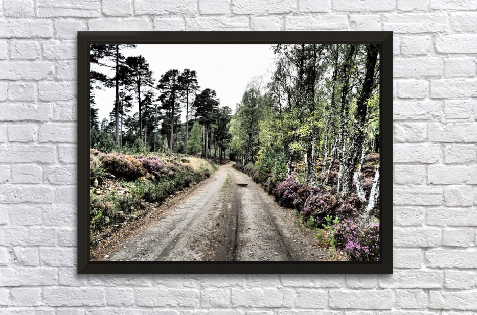 Get this artwork " Scottish Highlands Path through a Birch and Pine Forest " in a framed print.
