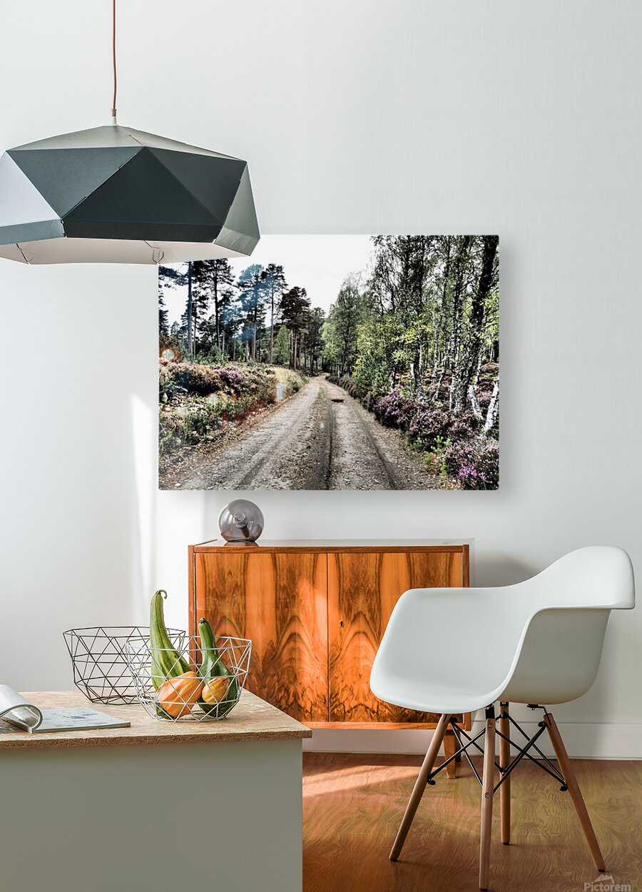 ABOUT THIS ARTWORK: SCOTTISH HIGHLANDS PATH THROUGH A BIRCH AND PINE FOREST