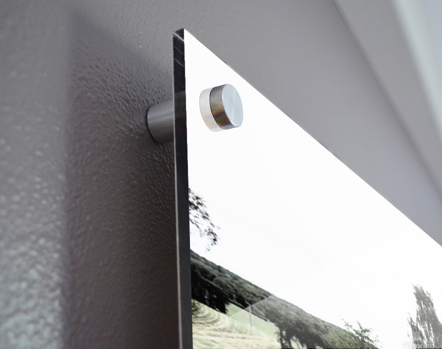 Printed to the edge - Ready to hang - provided with 4 premium polished aluminum stand off ( wall screws and mounting hardware provided )