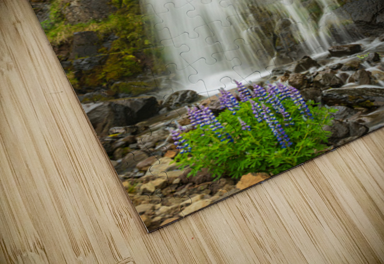 Budareyrarfoss waterfall cascades down the mountain by the port  Steve Heap Puzzle printing
