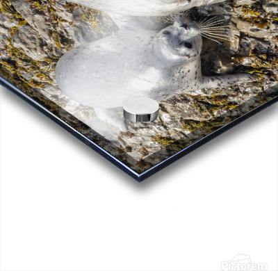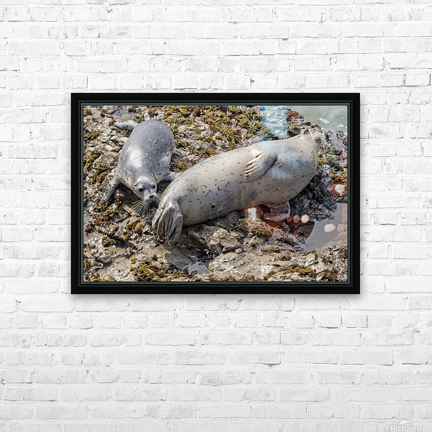 Seal pup and mom on rocks Picture Frame Printing