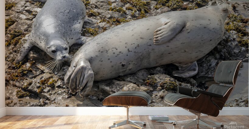 Get this artwork "Seal pup and mom on rocks" in a framed print.