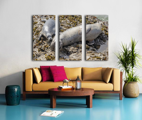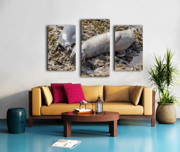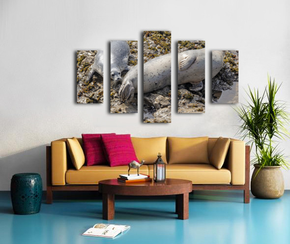 Seal pup and mom on rocks Canvas print