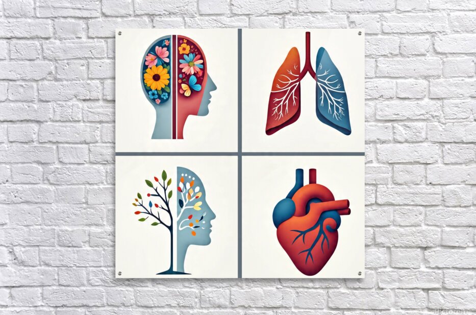 ABOUT THIS ARTWORK: MEDICAL ILLUSTRATION OF BRAIN AND HEART – CLINIC WALL ART