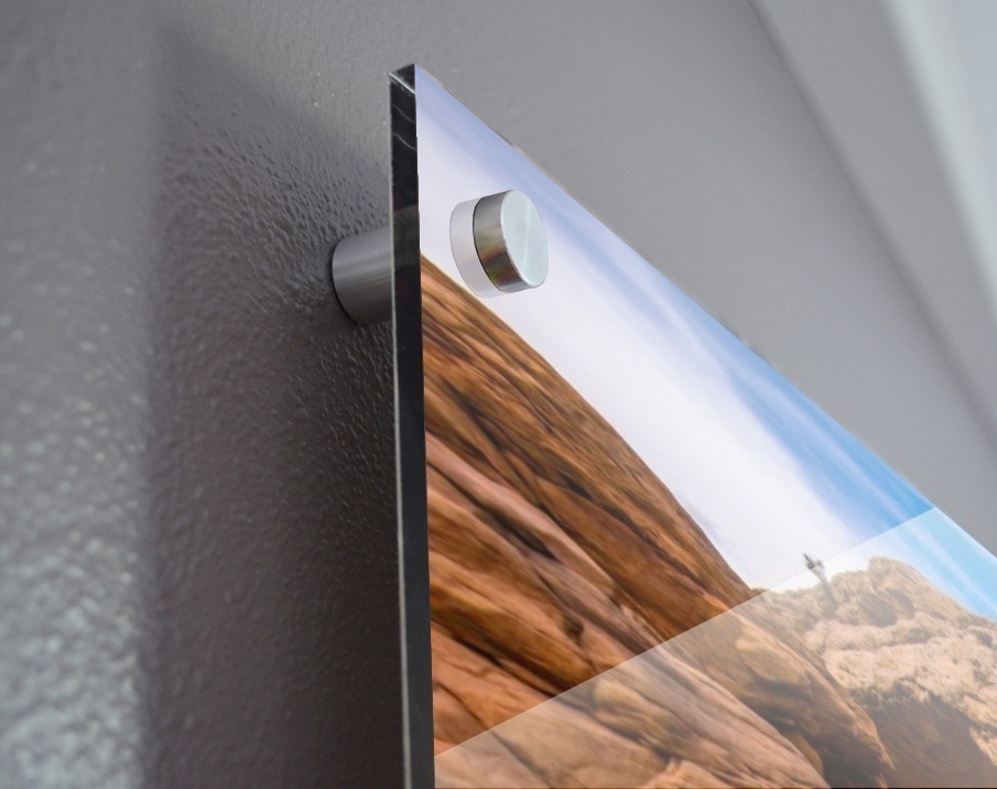Printed to the edge - Ready to hang - provided with 4 premium polished aluminum stand off ( wall screws and mounting hardware provided )