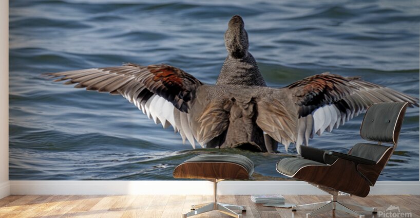 Get this artwork "Male Gadwall wing display" in a framed print.