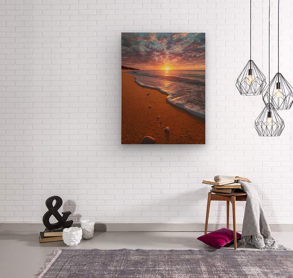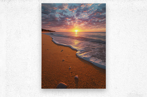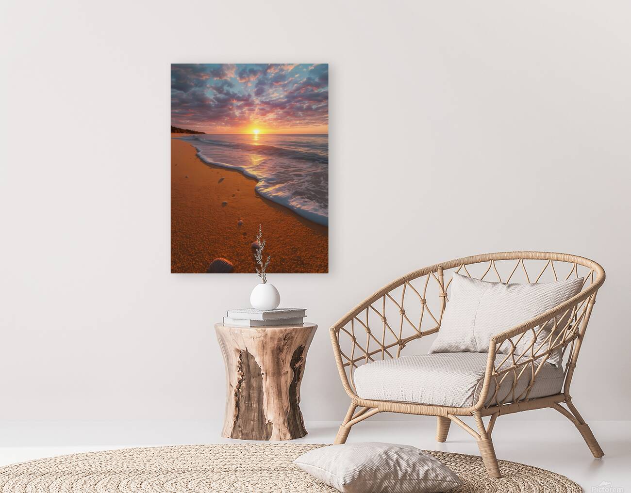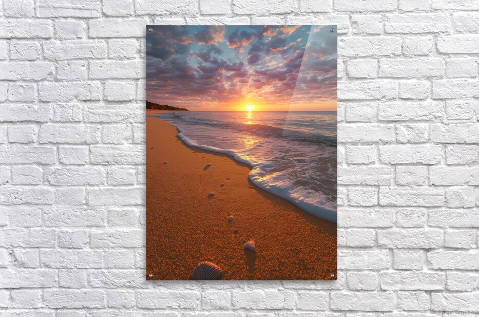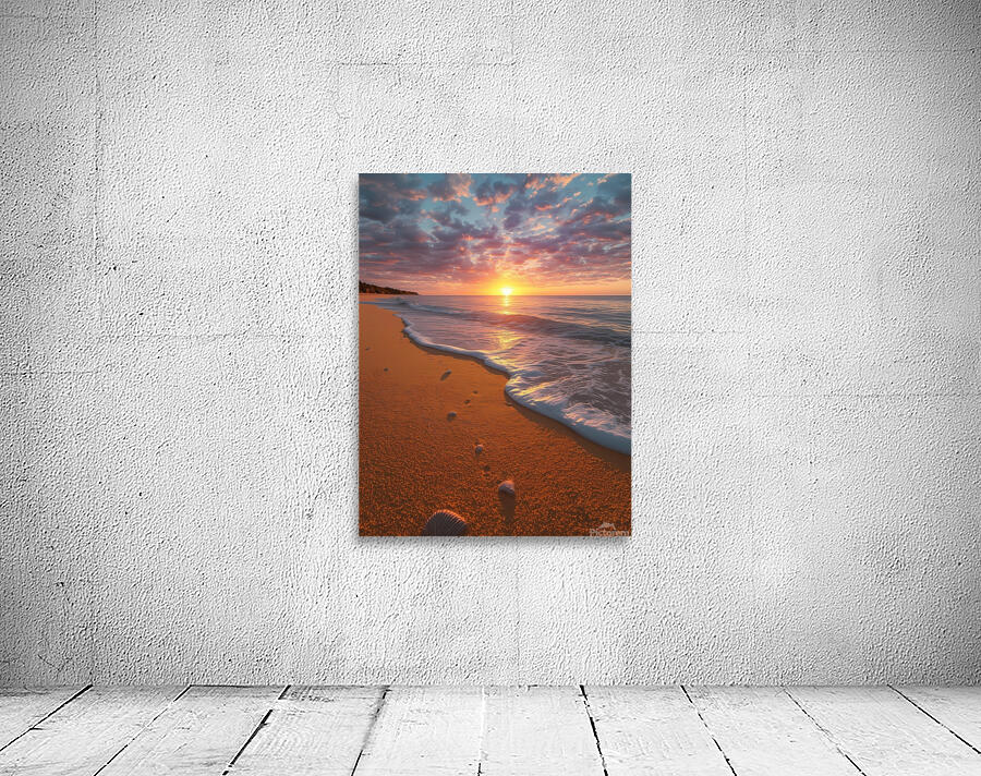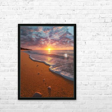 Start your day with the beauty of this breathtaking sunrise beach scene. Golden yellow sand meets gentle ocean waves as the rising sun fills the sky with warm orange and pink tones. Perfect for nature lovers, coastal décor enthusiasts, and anyone seeking a serene and timeless seascape to brighten their home.