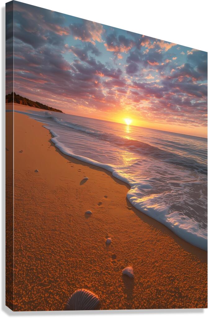 GOLDEN SUNRISE BEACH – STUNNING OCEAN WAVES AND YELLOW SAND MORNING SCENE INSPIRE ART  Canvas Print
