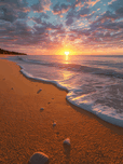 Start your day with the beauty of this breathtaking sunrise beach scene. Golden yellow sand meets gentle ocean waves as the rising sun fills the sky w...[+]