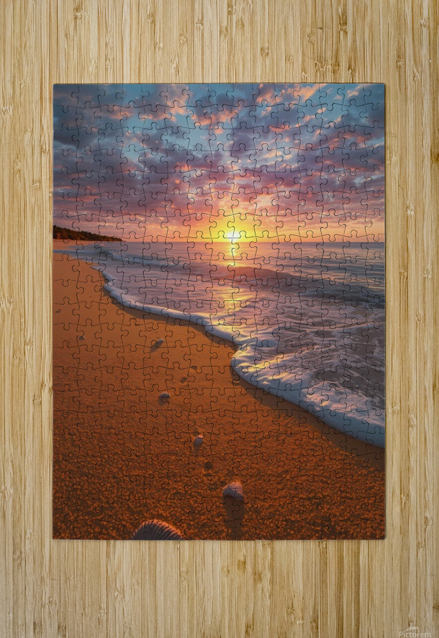Golden Sunrise Beach – Stunning Ocean Waves and Yellow Sand Morning Scene Inspire Art Puzzle printing
