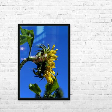Get this artwork "Sunflower against blue cloudless sky" in a framed print.