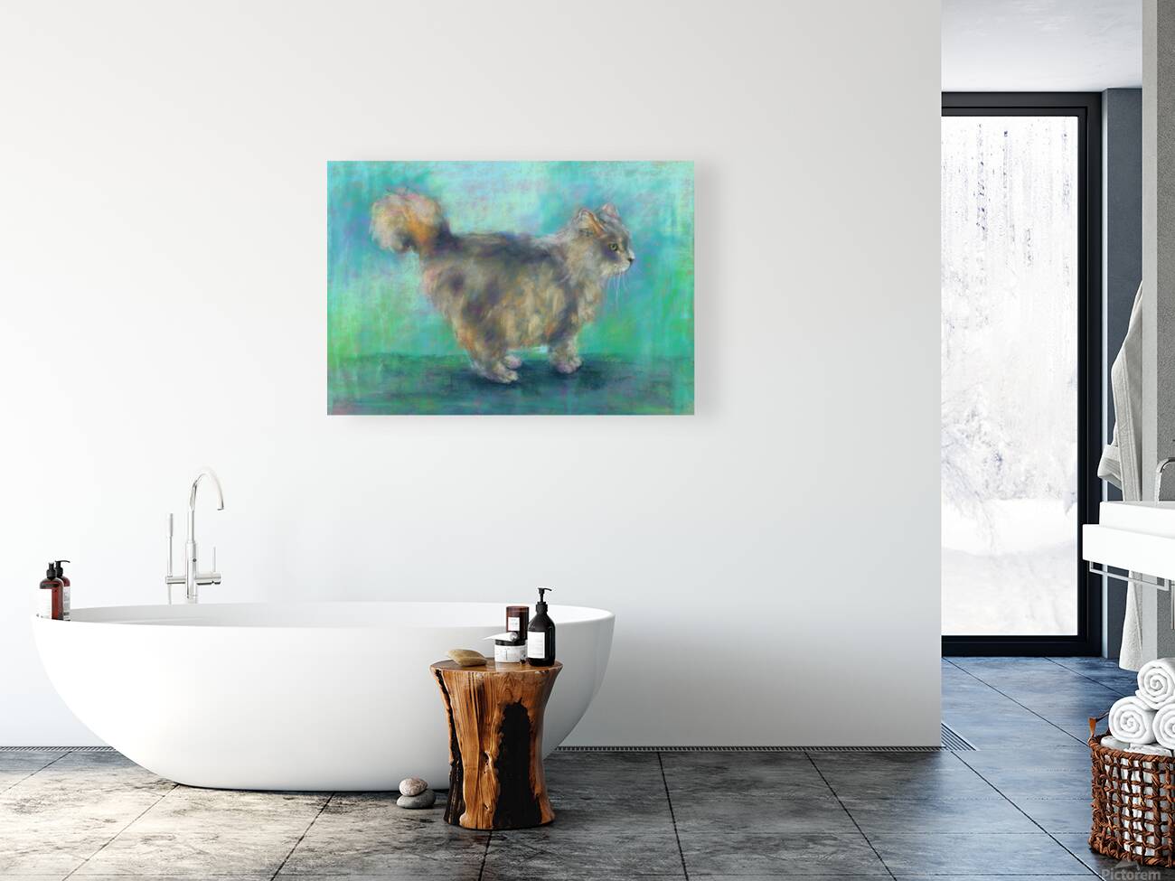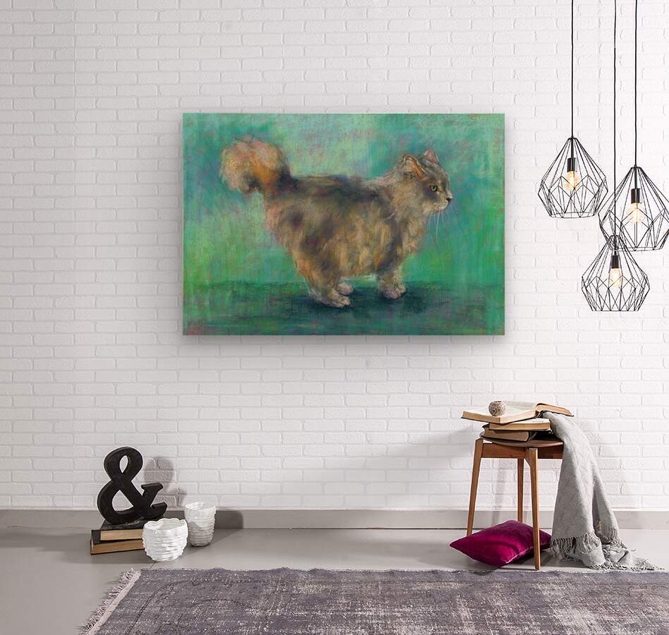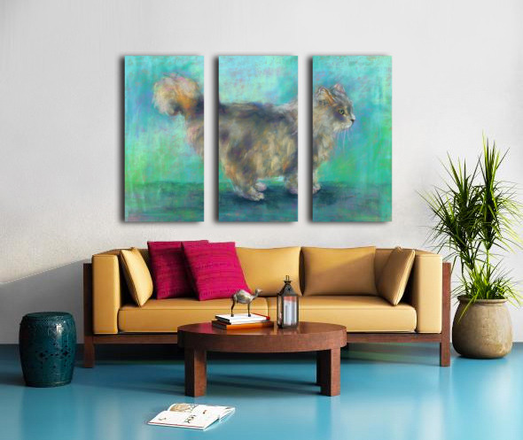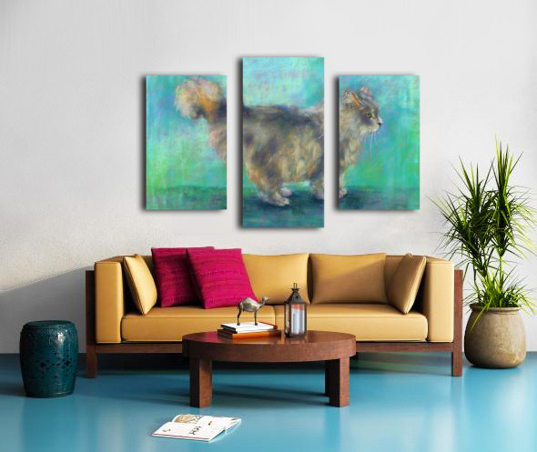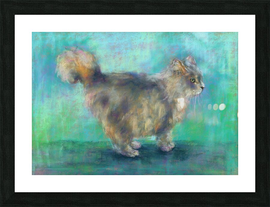 Fluffy longhair cat soft pastels painting Wall Decor Frame
