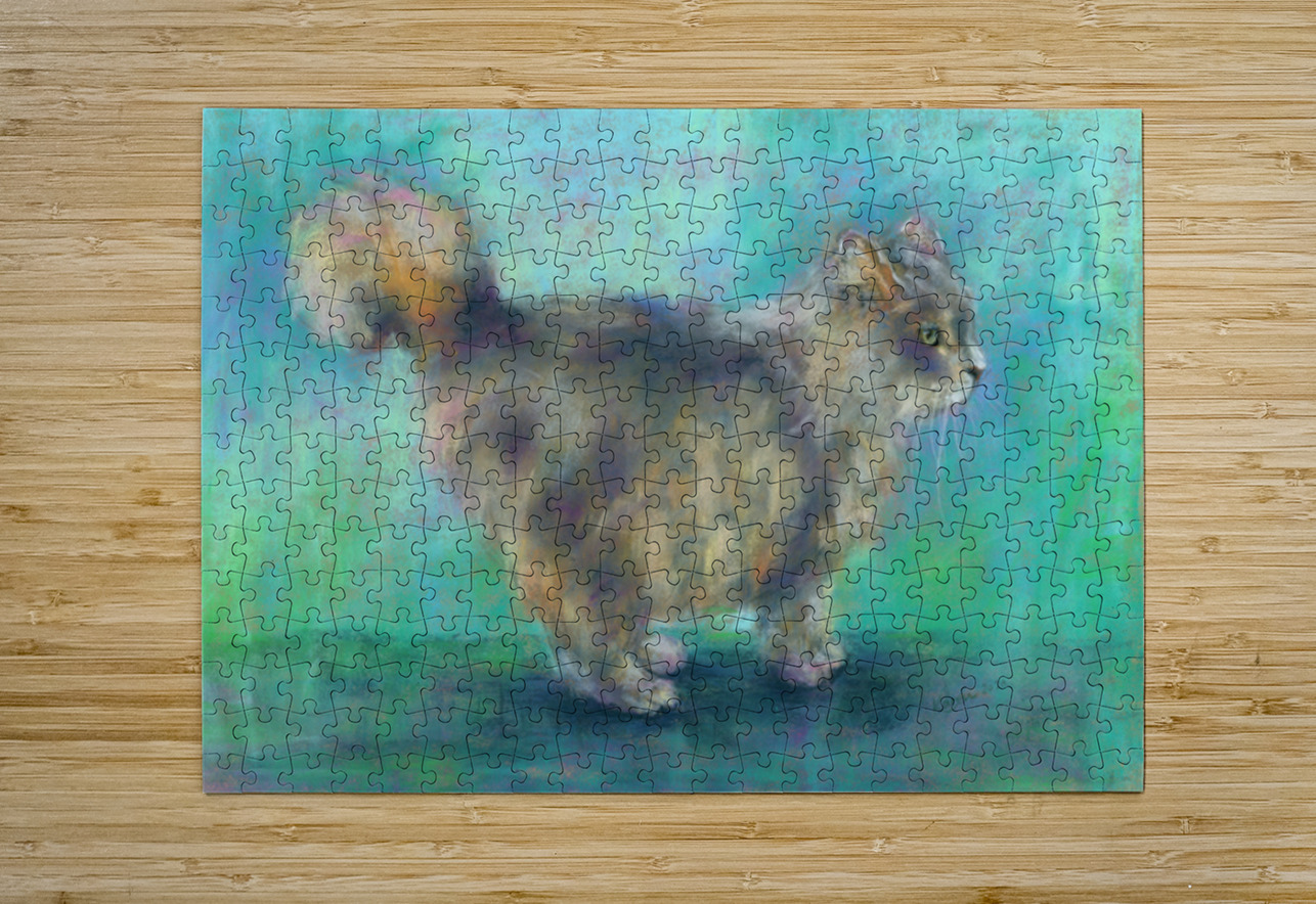Fluffy longhair cat soft pastels painting Karen Kaspar Puzzle printing