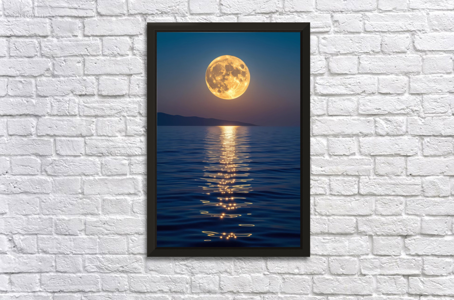 Get this artwork "Golden Moonrise Over the Sea" in a framed print.