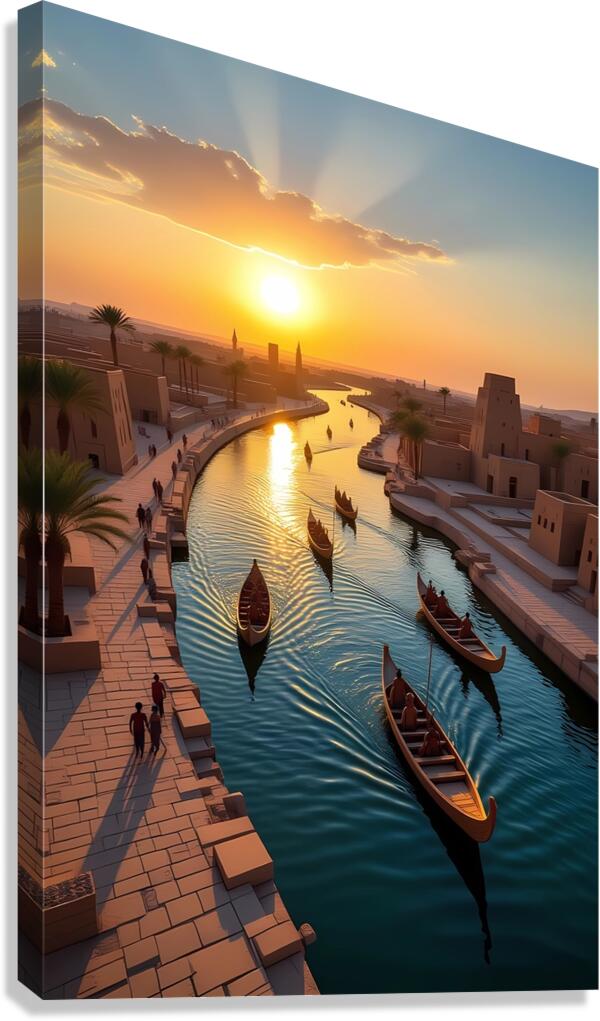 GOLDEN SUNSET OVER THE ANCIENT CANAL HASSAN MOUNIR  Canvas Print