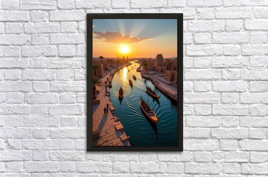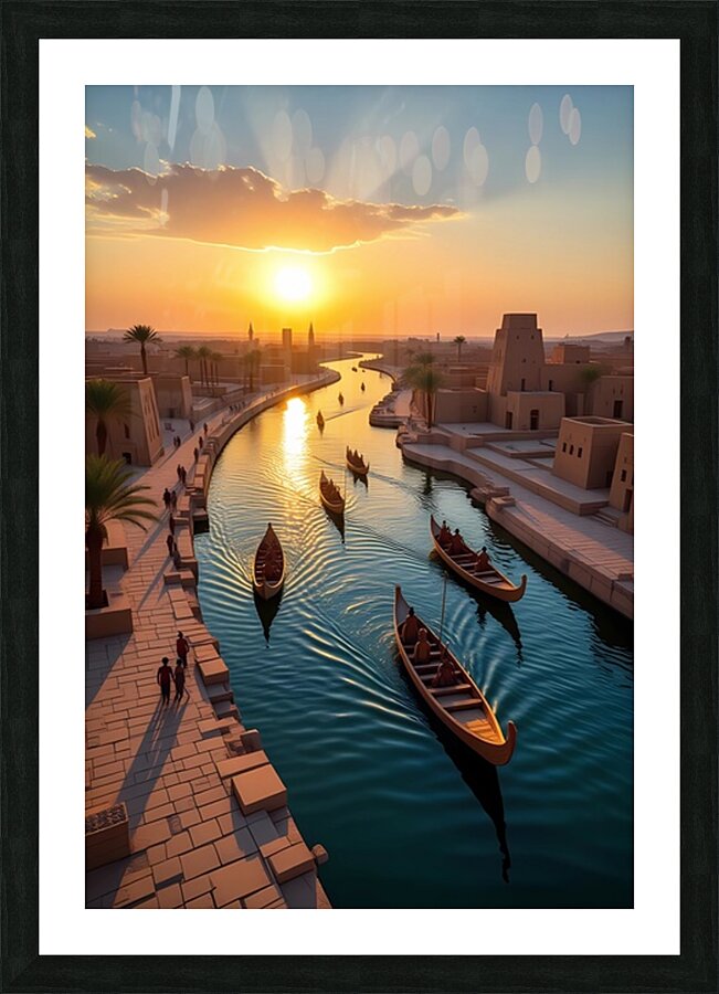 Get this artwork " Golden Sunset Over the Ancient Canal" in a framed print.