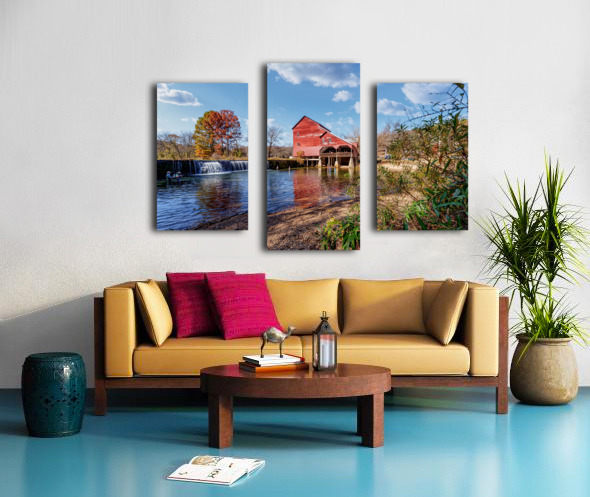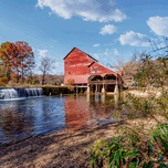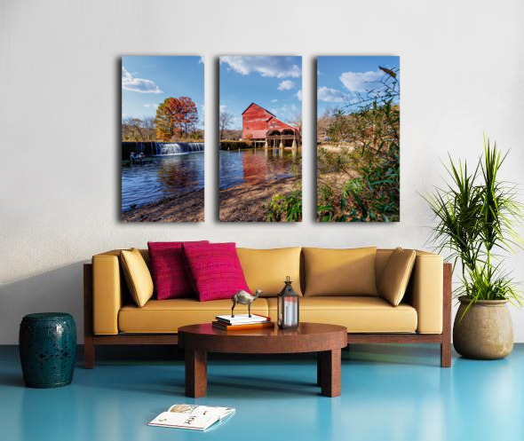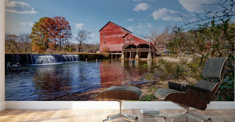This photograph captures fishermen casting their lines for trout at the historic Rockbridge Mill in Rockbridge, Missouri, USA. Unlike a long exposure, the rushing water over the waterfall dam appears crisp and full of motion, highlighting the natural energy of Spring Creek. I framed the scene from behind a nearby bush, its leaves softening the edge of the composition and adding depth to the view. Built in 1868, the vibrant red mill remains the centerpiece of the Rainbow Trout and Game Ranch, a favorite Ozarks destination offering fishing, dining, and history. I captured this during the fall season. Nestled within the scenic Mark Twain National Forest, Rockbridge Mill continues to embody the rustic charm of Missouri’s countryside. This was taken by Jennifer White with Timeless Moments Photography. All images are copyrighted © Timeless Moments Photography/Jennifer White. All rights reserved. Please note the watermark does not print on ordered products.