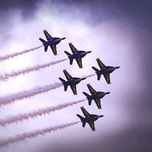BLUE ANGELS SOARING IN PERFECT FORMATION