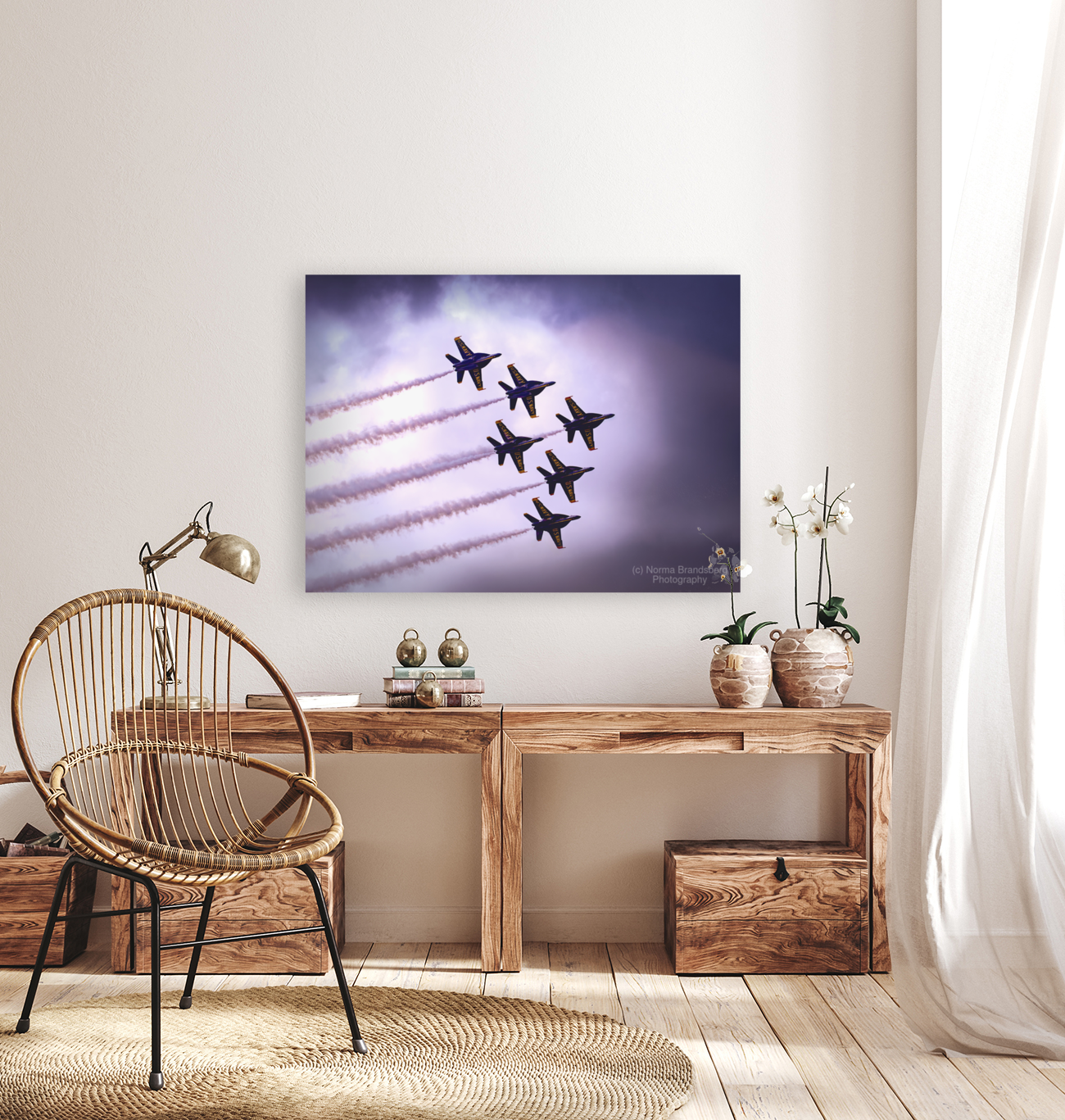 BLUE ANGELS SOARING IN PERFECT FORMATION NORMA BRANDSBERG PHOTOGRAPHY  Canvas Print