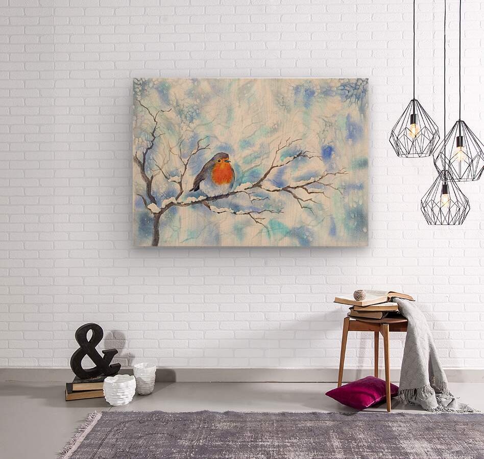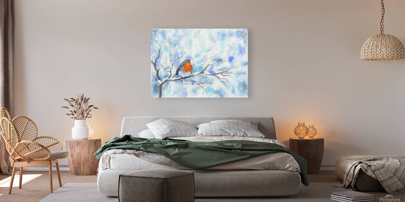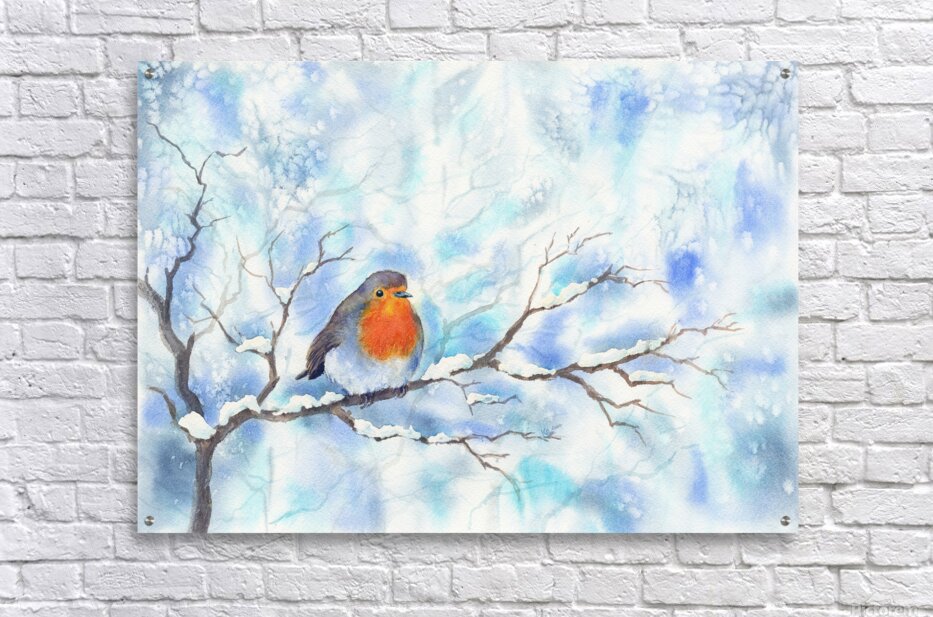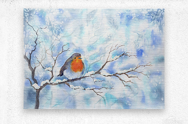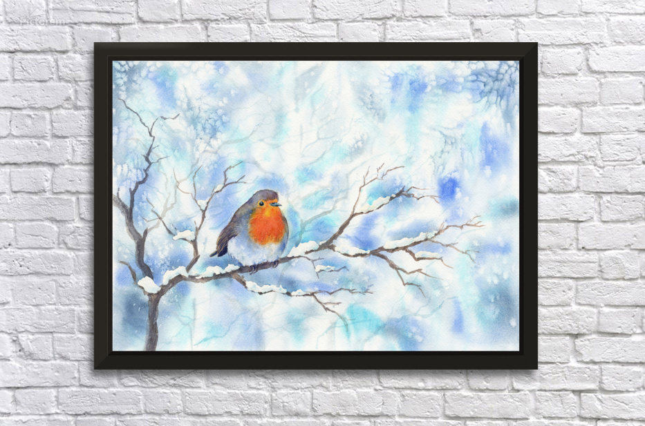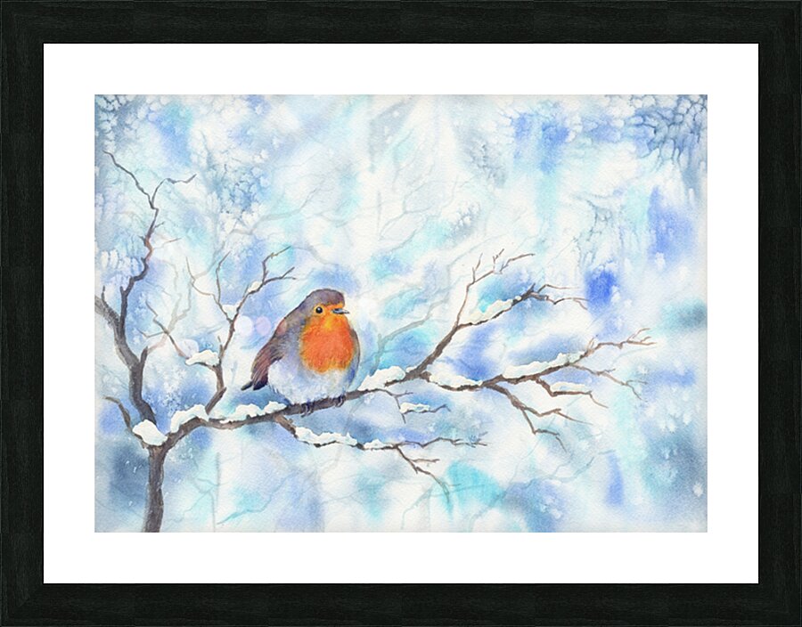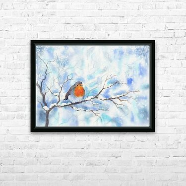 Get this artwork "Robin in a winter landscape" in a framed print.