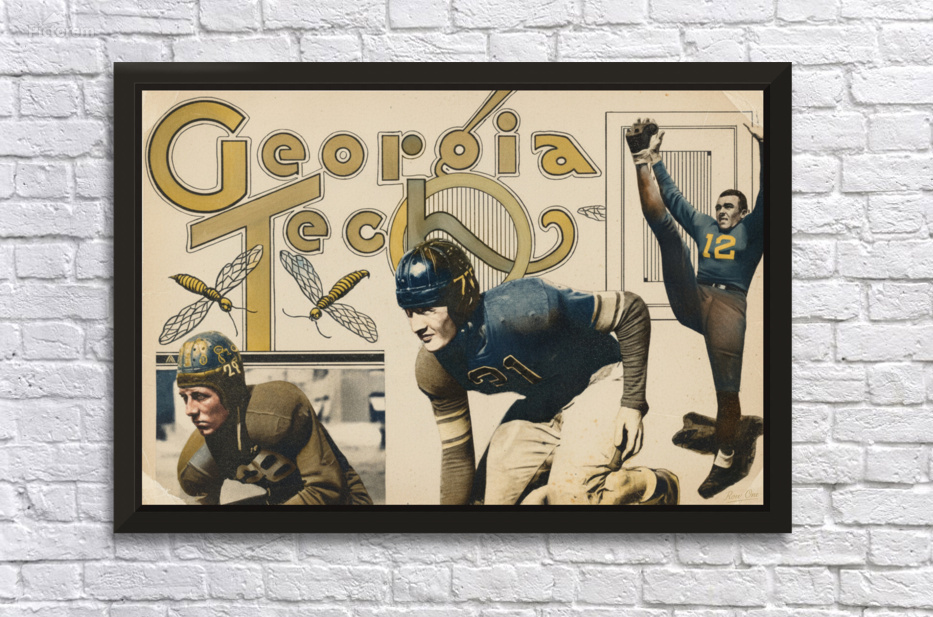 Vintage Georgia Tech Yellow Jackets Football Players Art Picture Frame Printing