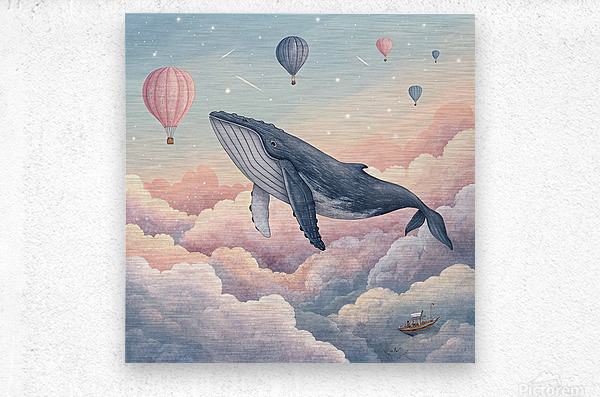 The Flying Whale in the Dawn Sky HD Sublimation Metal print with Decorating Float Frame (BOX)
