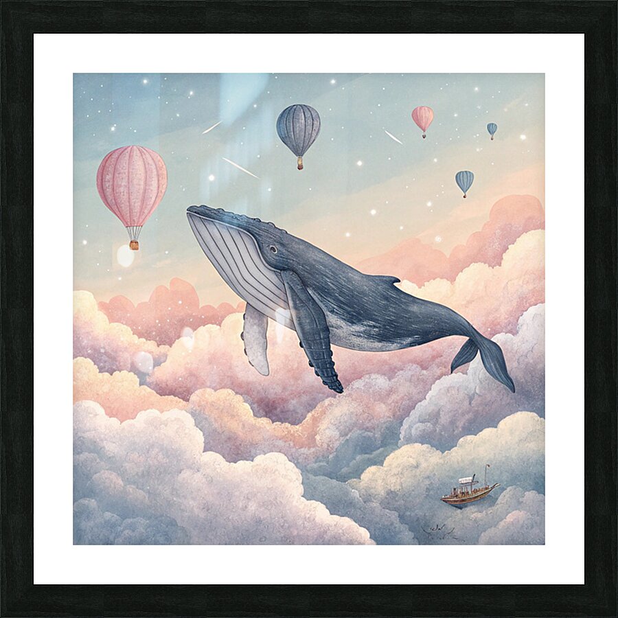 Get this artwork "The Flying Whale in the Dawn Sky" in a framed print.