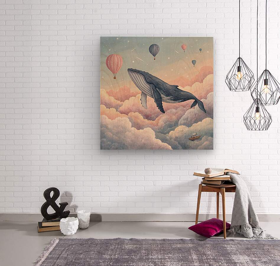 The Flying Whale in the Dawn Sky  Wood print