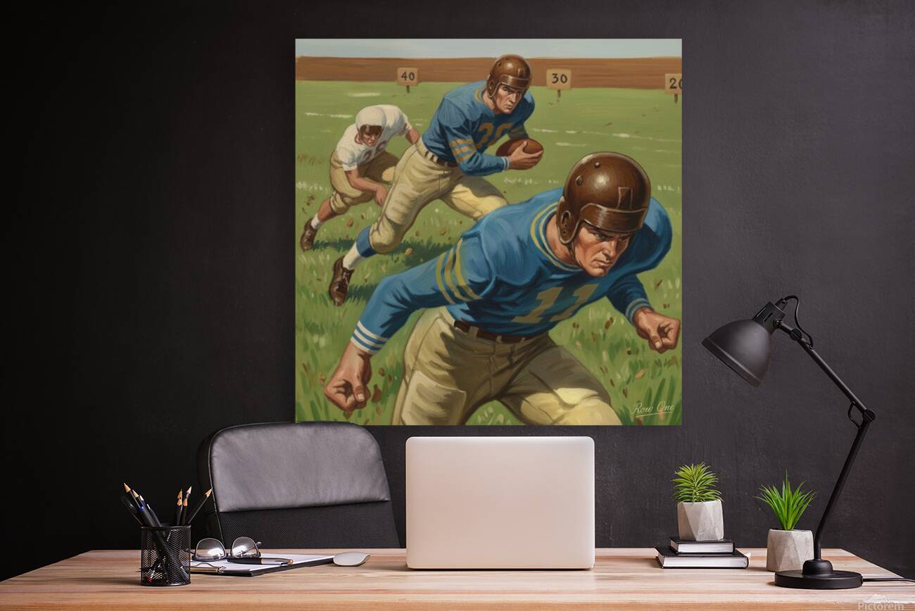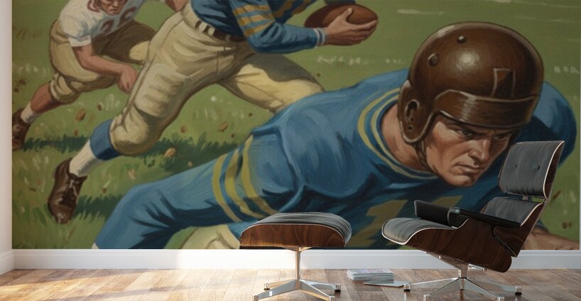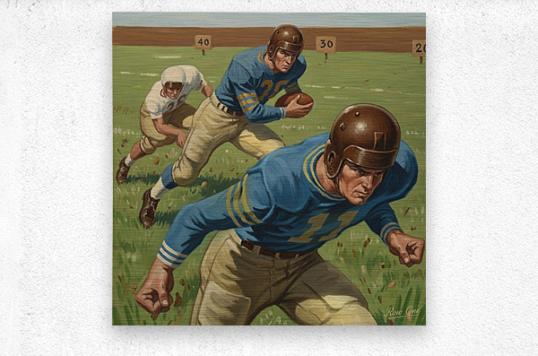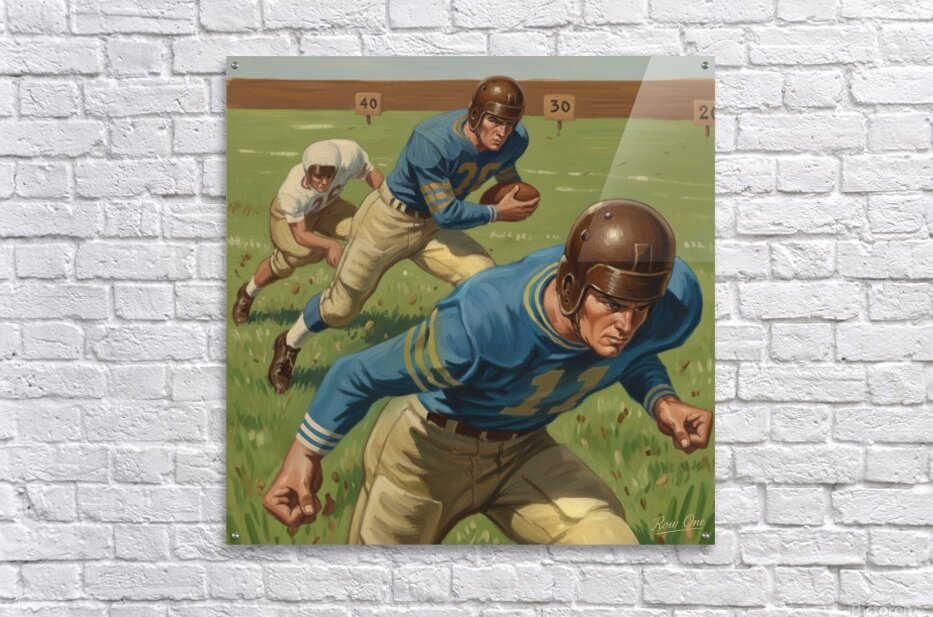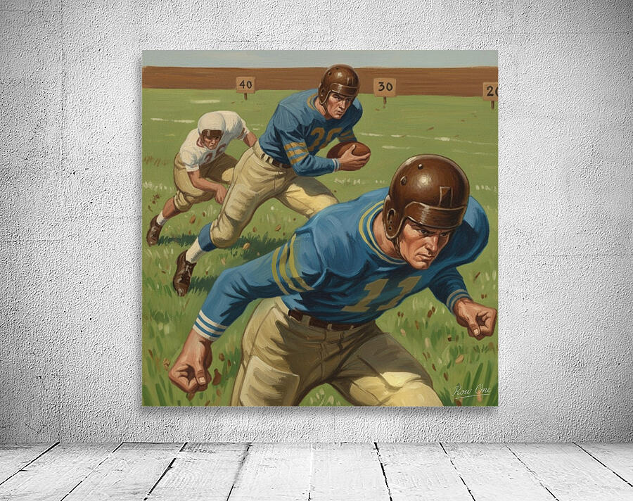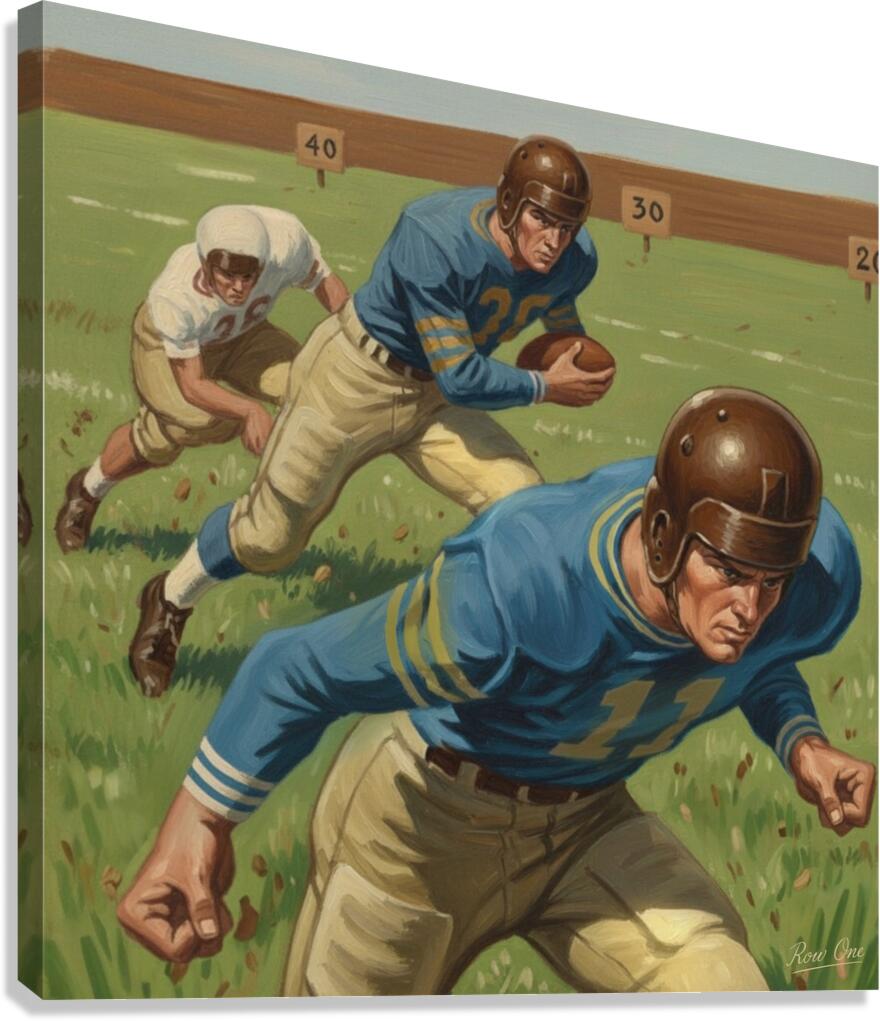 Created from an authentic 1950 football sketch and remixed for aesthetics by Row One Brand, this vintage '50 football action art will look fantastic in your game room or office. Derivative art © 2025 Row One Brand
