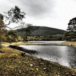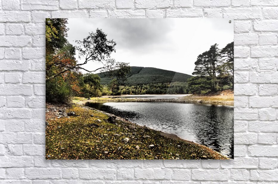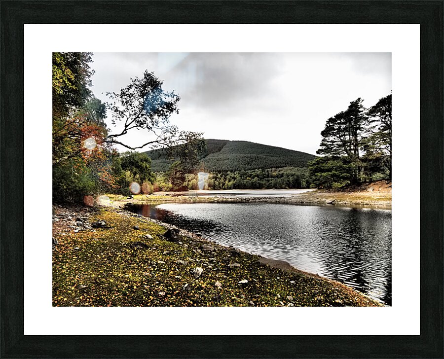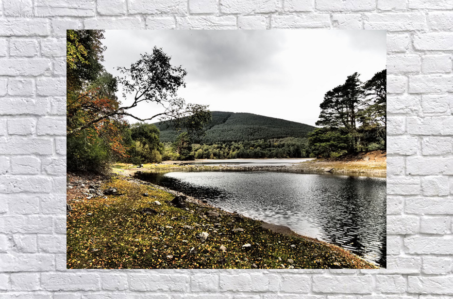 I took this photo during a lovely autumnal nature walk through the Scottish Highlands. Features a serene view of Loch Vaa surrounded by lush trees wi...[+]