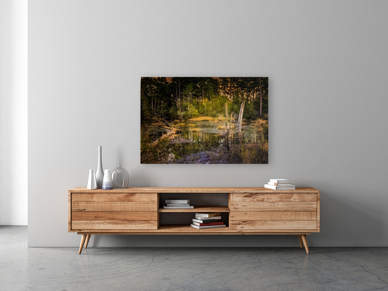 ABOUT THIS ARTWORK: SERENE VIRGINIA FOREST SWAMP AT DUSK